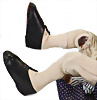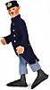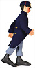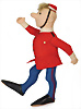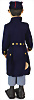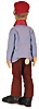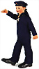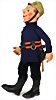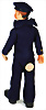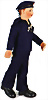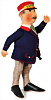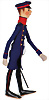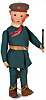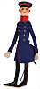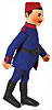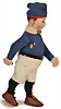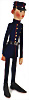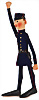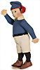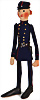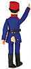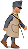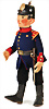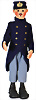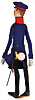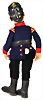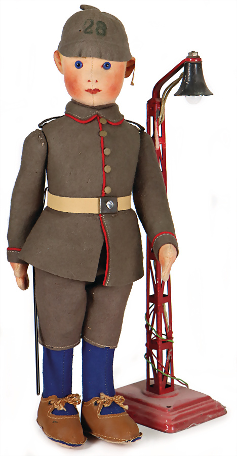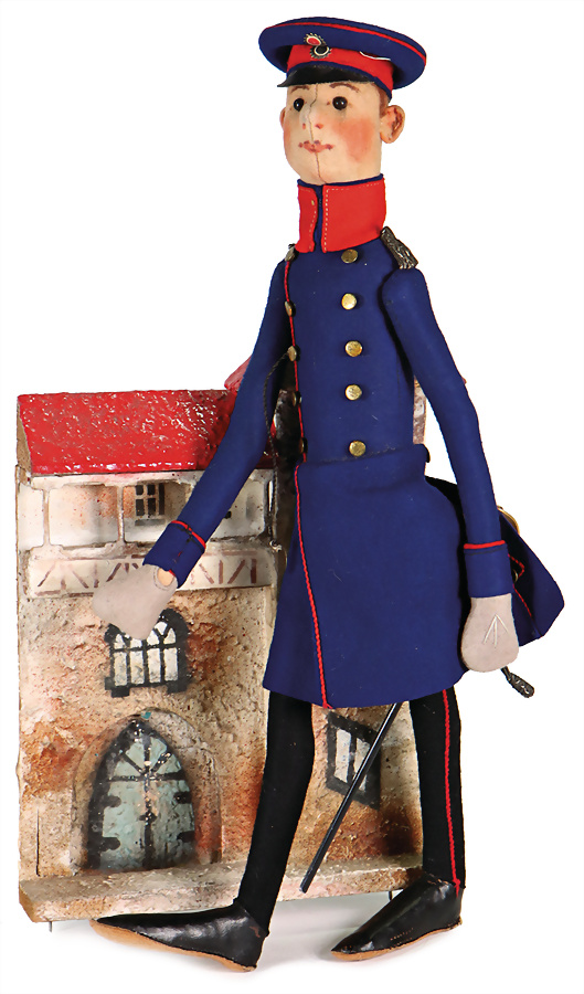 Karikierter franz. Polizist, Artikel-Nr. 43, hergestellt 1914, mit Knopf, Druckbuchstaben, langgezogenes f, Schuhknopfaugen, stark ausmodell. Nase, schönes Airbrush, dunkelblaue Filz-Kleidung mit goldenen Knöpfen, übergroße Leder-Schuhe, an vereinzelten Stellen kl. Löcher, 44 cm, sonst sehr schöner Zust., außergewöhnlich, Handmuster aus dem Steiff-Archiv mit orig. Steiff-Archiv Anhänger