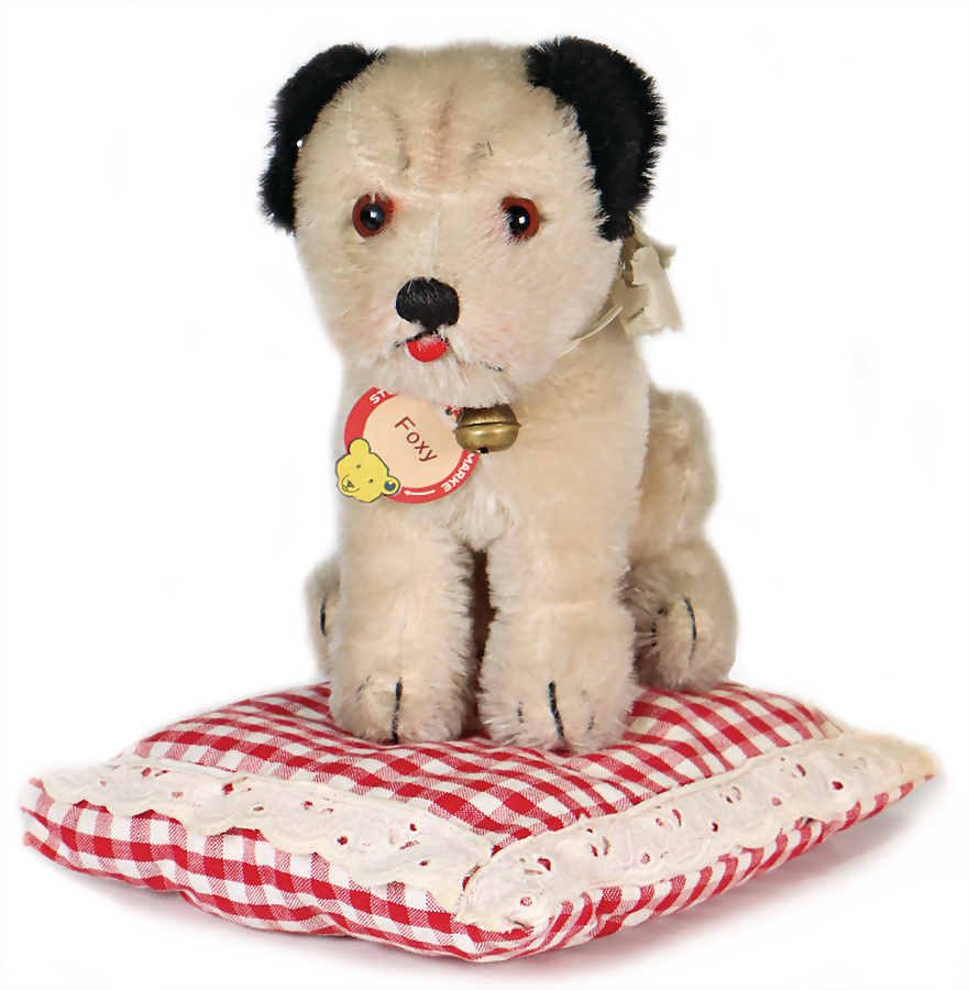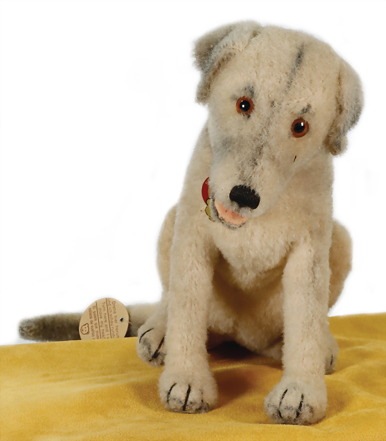 Nachdem Steiff's Variante des Bonzo nicht auf den Markt kommen konnte, ergänzt 1929 der Cheerio als frecher, lustiger, Foxterrier-Welpe die Steiff-Familie.