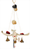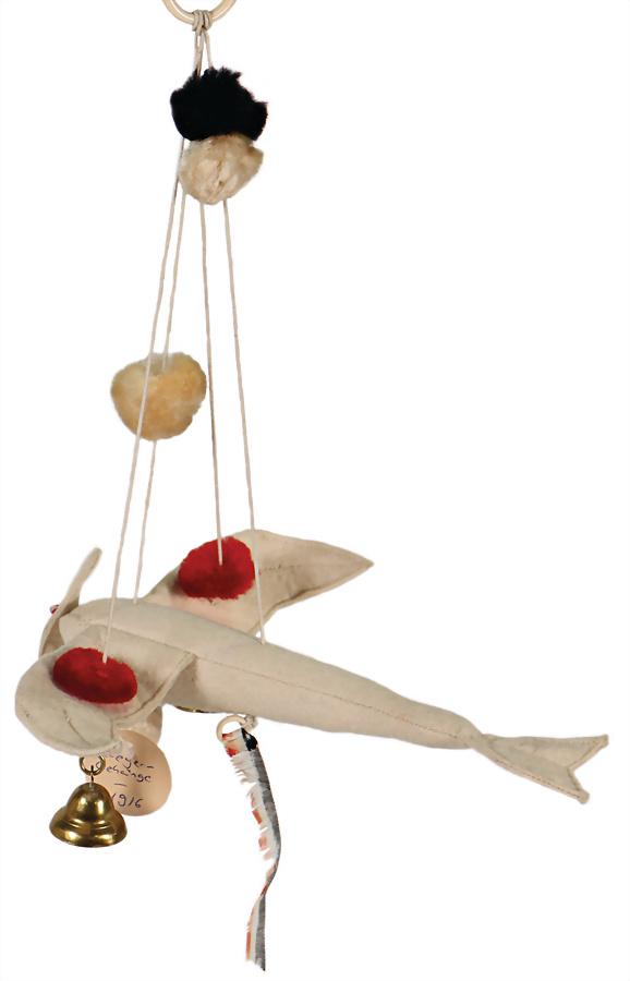 Flieger, extrem seltenes Mobilé zum Aufhängen für den Kinderwagen, hergestellt 1916, Propeller-Flieger mit Glöckchen, sowie Seiden-Fahne, H: 25 cm, L: 21 cm, außergewöhnlich, mit Seiten-Bommeln, Handmuster aus dem Steiff-Archiv mit orig. Steiff-Archiv Anhänger