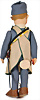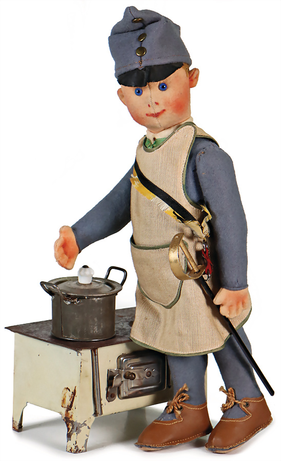 Die frühen Jahre des 20. Jahrhunderts sind geprägt von einer Begeisterung für Marine und Militär. Steiffs Soldatenfiguren, ausgestattet mit vielfältigen Accessoires, spiegeln diesen Zeitgeist wider. Der Infanterist – zu Fuß, in standardisierter Uniform – repräsentiert eines der zentralen Heereselemente der deutschen Truppen. In den ersten Kriegsjahren spielte die Infanterie eine entscheidende Rolle in Stellungskämpfen.