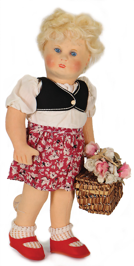 Seit Ende der 1920er Jahre experimentiert Steiff an Puppen mit gepressten Filzköpfen ohne Mittelnaht. Der Kopf erinnert an das von Francois Duquesnois entworfene Kindergesicht, das in dieser Zeit auch von anderen Werkstätten als Vorbild benutzt wird. Es dauert einige Jahre bis ein Verfahren gefunden wird das praktikabel ist. Der Filz wird in einem speziellen Verfahren gepresst und von hinten durch eine Celluloid-Maske verstärkt. Bei manchen Teilen, wie bei den Ohren, wird der Filz zur Verstärkung in einer Celluloid-Lösung getränkt. Erstmals vorgestellt werden diese "neuen" Puppen 1936 auf der Leipziger Frühjahrsmesse.