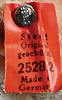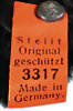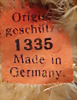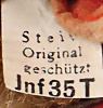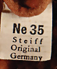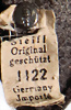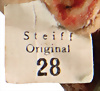 Türkischer Soldat, Artikel-Nr. 35, hergestellt 1915, mit kl. Steiff-Knopf, Druckbuchstaben, langgezogenes f, kl. Schuhknopfaugen, sehr schöne kräftige Airbrush-Bemalung, errötete Wangen und Ohren, schwarzer Schnurrbart, gemalte Haare, unbespielte Uniform, mit Gürtel und Säbel, unbespielter Zust., Handmuster aus dem Steiff-Archiv mit orig. Steiff-Archiv Anhänger