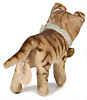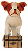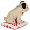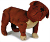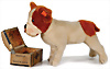 Bulldogge, Artikel-Nr. 5217, hergestellt 1907, mit Muster-Knopf, Schuhknopfaugen, Kurzplüschmohair, mit eingesetztem Mohair an den Vorderpfoten, sowie auf der Brust, 5-fach gegliedert, sehr schöner orig.-Zust., minim. kl. ursprüngliche Nahtstelle am linken Hinterlauf, H: 21 cm, L: 28 cm, Handmuster aus dem Steiff-Archiv mit orig. Steiff-Archiv Anhänger