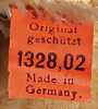 Filz-Puppe, Jung-Held mit Fahne, hergestellt 1915, mit Knopf, weiße Papier-Fahne, Aufschrift: Steiff Original 28, Filz-Puppe mit Filz-Pickelhaube, Aufschrift: 28, blaue Glasaugen, sehr schönes deutliches Airbrush, Filz-Oberbekleidung, Baumwoll-Hose, Gürtel, mit Stab in der Hand, 32 cm, sehr schöner unbespielter Zust., Handmuster aus dem Steiff-Archiv mit orig. Steiff-Archiv Anhänger