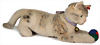 Wollplüsch Katze, Artikel-Nr. 2528,2, hergestellt am 17.05.1933, mit Knopf, Druckbuchstaben, langgezogenes f, rote Fahne, Nr. auf der Fahne: 2528,2, grüne Glasaugen, drehbarer Kopf, liegend, Filz hinterlegte Ohren, sehr schönes farbkräftiges Wollplüsch, kl. Nomotta-Woll-Ball in den Pfoten, auf kl. Holz-Stäben, Musterstück, L: 41 cm, H: 19 cm, unbespielter Zust., Handmuster aus dem Steiff-Archiv mit orig. Steiff-Archiv Anhänger