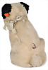 Der Spitz ist eine sehr alte Hunderasse, die in Mitteleuropa ursprünglich als Wach- und Jagdhund verbreitet war. Schnell kletterte der flauschige, neugierige, lebhafte und intelligente Spitz die gesellschaftliche Leiter hoch. Bald war er in den gehobenen Kreisen als Schoßhündchen nicht mehr wegzudenken. Die Firma Steiff reagierte auf diesen Trend mit Spitzvarianten, teils auf einem Kissen thronend, in verschiedenen Größen und Modellen,. So auch dieser Spitz PAB von 1906 (PAB steht für Plüsch, angescheibt und beweglich) – ein absolutes „Must-have“ in jeder hochwertigen Sammlung.