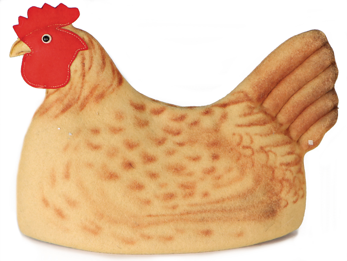 EIER / KAFFEE HÜLLE HENNE, Artikel-Nr. 17135, hergestellt 1909, Filz unterlegte Schuhknopfaugen, sehr schöner unbespielter Zust., H: 18 cm, L: 27 cm, Handmuster aus dem Steiff-Archiv mit orig. Steiff-Archiv Anhänger