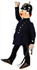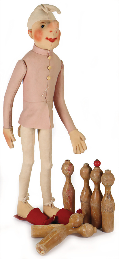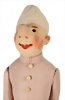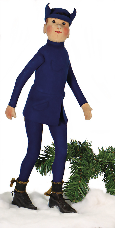 Filz-Figur, SCHIMANN, Artikel-Nr. 40, hergestellt 1914, 40 cm, blaue Mütze sowie marineblauer Anzug, stark ausgeformte Lederstiefel, Stulpen, überlange Arme und Beine, sehr schöner orig.-Zust., Handmuster aus dem Steiff-Archiv mit orig. Steiff-Archiv Anhänger