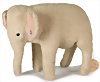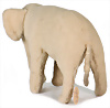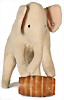BABY-WACHSTIER ELEFANT, Artikel-Nr. 1714,0, hergestellt 1938, mit Knopf, Druckbuchstaben, langgezogenes f, Schuhknopfaugen, Wachstuch, stehend, bunt bemalt, teilw. auf der linken Seite Farbfehler, schwimmfähig, mit Kapok-Füllung, H: 13 cm, L: 16 cm, Handmuster aus dem Steiff-Archiv mit orig. Steiff-Archiv Anhänger