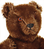 Bär, TEDDY, Artikel-Nr. 5317,2, hergestellt am 16.07.1930, dunkelbraunes Kurz-Mohair, lange abgeknickte Arme, Glasaugen, 27 cm, ausdrucksstark, unbespielter orig.-Zust., Handmuster aus dem Steiff-Archiv mit orig. Steiff-Archiv Anhänger