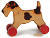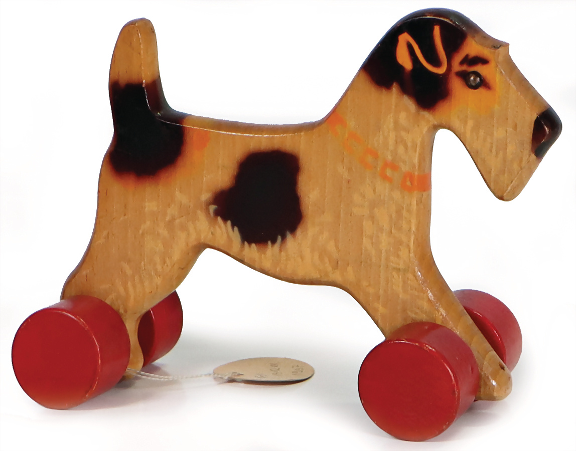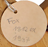Vorkrieg, Holzspielzeug, Fox auf Exzenter-Rädern mit Knopf, langgezogenes f, Archiv-Anhänger, 1812EX, 1937, Handmuster aus dem STEIFF Archiv