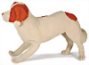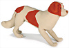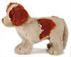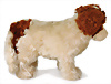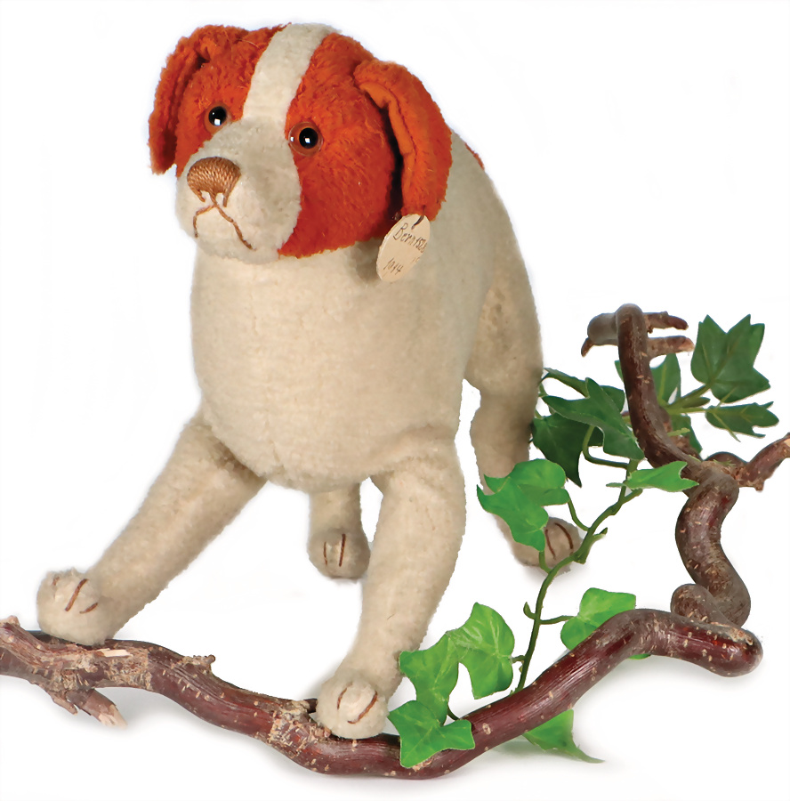 Bernhardiner, Artikel-Nr. 1528, 0, hergestellt 1914, mit Musterknopf, Lammplüsch, weiß gefleckt, stehend, Glasaugen, etwas Füllverlust in den Vorderbeinen, sonst sehr schöner Zustand, H: 25 cm, L: 43 cm, mit Schwanz, ausdrucksstark, sehr schöne, rostrote Farbe, beiges Lammplüsch, etwas eingestaubt, Handmuster aus dem STEIFF Archiv, mit original STEIFF Archiv-Plakette