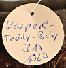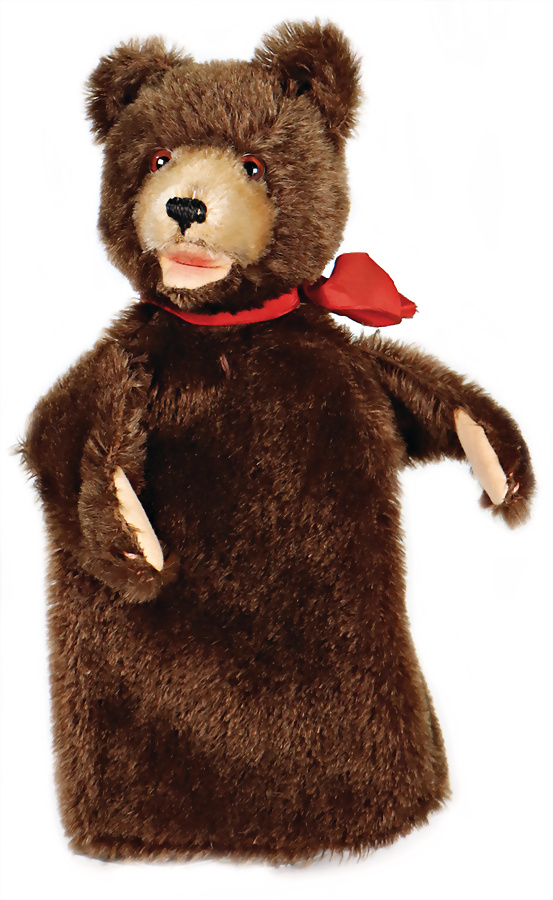 Handspielpuppe, Kasperl Teddy-Baby, hergesellt 1929, Artikel-Nr. 317, Glasaugen, off. Mund, Filzschnauze, sowie Filztatzen, hergestellt ohne Knopf, Schild u. Fahne, 26 cm, unbespielter Zustand, Handmuster aus dem STEIFF Archiv, mit original STEIFF Archiv-Plakette