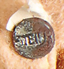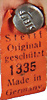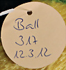 Ball, Vorkrieg, mit Knopf, langgezogenes f, Reste weißer Fahne, Archiv-Anhänger, T12R251916, guter Zustand, Handmuster aus dem STEIFF Archiv