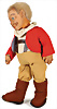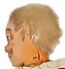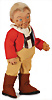 Larifari, hergestellt 1955, Artikel-Nr. 732, Vinyl-Kopf, blaue gemalte Augen, ausmodelliertes, lächelndes Gesicht, Vinyl-Finger sowie –Beine, Hals seitlich etwas aufgebrochen, Orig.-Kleidung, 31 cm, Handmuster aus dem STEIFF Archiv, mit original STEIFF Archiv-Plakette