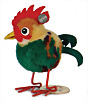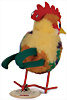 Wollminiatur, Hahn, Werkmusterstück, Artikel-Nr. HAHN1508, mit großem Musterknopf, sowie zusätzliches STEIFF Schild Aufschrift STEIFF Made in Germany Import d´Allemagne 2.10, große, weiße Augen mit schwarzer Pupille, auf Drahtfüßen, Filzkamm, Schnabel und Schwanz, H: 8 cm, unberührter original Zustand