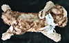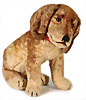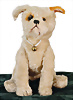 Hund, Bernhardiner, Artikel-Nr. 6328,01, hergestellt 1914, mit orig. STEIFF-Archiv-Anhänger, Aufschrift handschriftlich Bernh. 6328,01M., 1 Seite weggerissen, stehend, braunes sowie beigefarbenes Mohair, Filz unterlegte Glasaugen, 1 Auge mit Riss, sonst sehr schöner Orig.-Zust., H: 28 cm, L: 38 cm, Handmuster aus dem STEIFF Archiv
