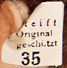 Österreichischer Infanterist, hergestellt 1915, Artikel-Nr. 35A, Filzkopf, royalblaue, fest eingesetzte Glasaugen, deutliches Airbrush, eingesetztes, blondes Mohair, hellblauer Filzanzug, an den Schultern zusätzlich angebrachte STEIFF Knöpfe, produziert ohne Knopf im Ohr, mit STEIFF Rucksack, Stehhöhe 36 cm, kurze Lederschuhe, unbespielter Orig.-Zustand, Handmuster aus dem STEIFF Archiv, mit original STEIFF Archiv-Plakette