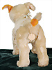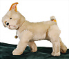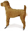 Fox Terrier, hergestellt am 04.08.1923, Artikel-Nr. 5328, mit Knopf, Druckbuchstaben, langgezogenes f, 28 cm, Stehhöhe, feiner Samteinsatz in den Ohren, Schuhknopfaugen, rostrotes, gefleckes beiges Mohair, mit rostroten Flecken, 1 rostrotes Ohr, 5-fach gegliedert, ausdrucksstark, selten, in sehr schönem Zustand, Handmuster aus dem STEIFF Archiv, mit original STEIFF Archiv-Plakette