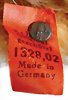 Infanterist, Leutnant, hergestellt 1915, Artikel-Nr. 28, Filzkopf, royalblaue Glasaugen, Filzpickelhaube, Aufschrift 28, leicht verblasst, eingesetzte, blonde Mohair-Haare, mit großem Musterknopf, kakifarbene Filzkleidung, 29 cm, sehr schöner Allgemeinzustand, hohe, enge Lederstiefel, Handmuster aus dem STEIFF Archiv, mit original STEIFF Archiv-Plakette