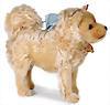 Chow-Chow Brownie, stehend, hergestellt: 1928, Artikelnummer: 1328, 02, mit Brustschild und roter Fahne, stehend, Glasaugen, teilw. Langmohair, hellbraune Färbung, sehr schöner unbespielter Zustand, H: 26 cm, L: 30 cm, aus dem Steiff-Archiv mit orig. Steiff-Archiv Anhänger