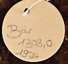 Bär auf 4 Pfoten, hergestellt 1924, Artikel-Nr. 1308,0, honigbraune Glasaugen, kurzes, braunes Mohair, hergestellt ohne Knopf, Schild und Fahne, L: 12 cm, H: 8 cm, sehr schöner Allgemeinzustand, Handmuster aus dem Steiff-Archiv mit orig. Steiff-Archiv Anhänger