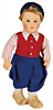 Filzpuppe, Dorus, hergestellt 1939, Artikel-Nr. 35, Filzpresskopf, eingesetzte Glasaugen, kl. Löchlein am Mund, holländisches Outfit, 33 cm, sehr schöner Orig.-Zustand, Handmuster aus dem STEIFF Archiv, mit original STEIFF Archiv-Plakette