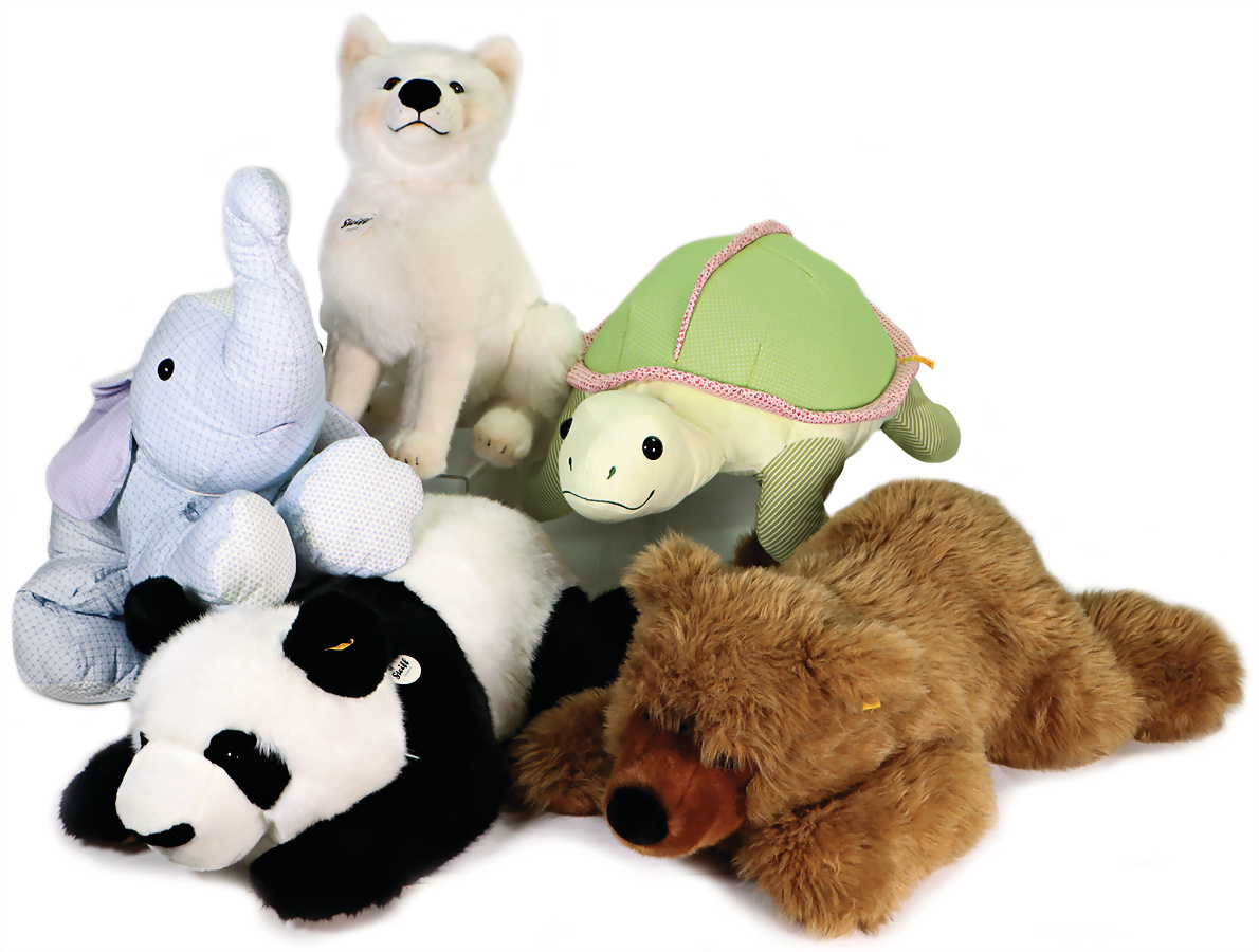 Konv. 5 Artikel, Elefant, liegend, mit goldenem Knopf, gelber Fahne, Aufdruck Werkmuster, liegend, sehr guter Zust., L: 65 cm, Schildkröte Artikel-Nr. 235467, goldener Knopf, gelbe Fahne, Aufdruck Werkmuster, Archiv-Anhänger 2012, 60 cm, sehr guter Zust., Polarfuchs, mit Brustschild, weiß, 501401, mit Archiv-Anhänger 2014, H: 45 cm, sehr guter Zust., Brummi, Braunbär, goldener Knopf, gelbe Fahne, mit Aufdruck Handmuster, Artikel-Nr. 069895, mit Archiv-Anhänger, 2005, L: 65 cm, guter Zust., Panther, kompl., silberner Knopf, gelbe Fahne, Aufdruck Werkmuster, Artikel-Nr. 060335, mit Archiv-Anhänger 2018, L: 60 cm, sehr guter Zust., Handmuster aus dem STEIFF Archiv mit orig. STEIFF Archiv-Anhänger