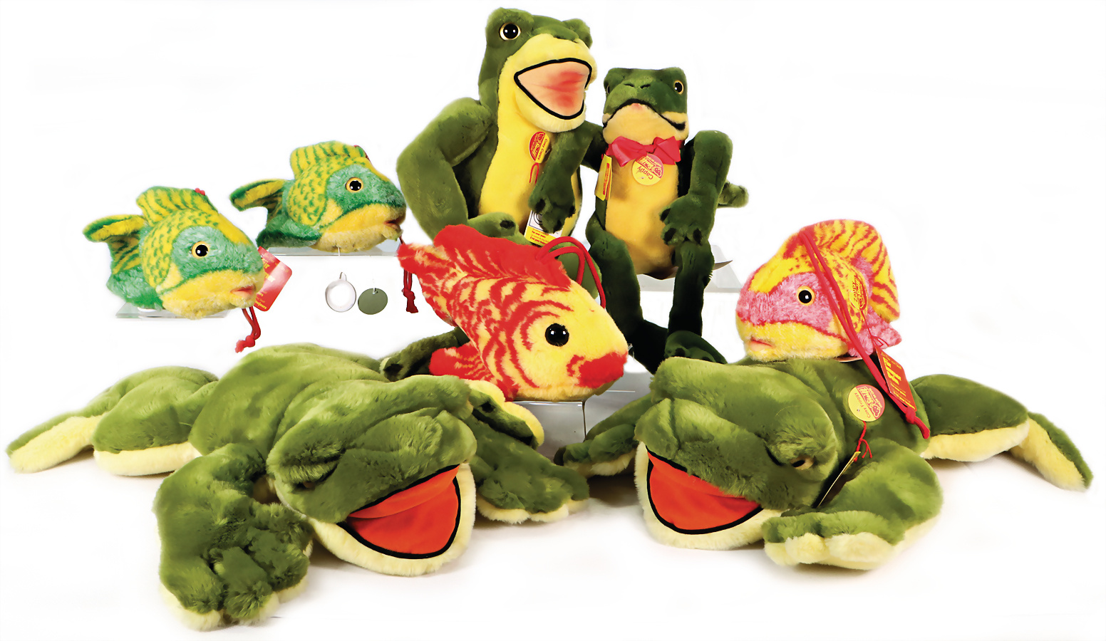 Konv. 8 Artikel, 2x Cosy Froggy, mit Brustschild, Artikel-Nr. 5382/ 43, mit Archiv-Anhänger, 1981, 40 cm, guter Zust., Frosch Cappy, Schlenkerfrosch, Artikel-Nr. 6292/ 32, Brustschild, Werkmuster-Anhänger mit Metall-Siegel, 28 cm, Cosy Cuppi, 5383/ 60, mit Brustschild, Archiv-Anhänger, 1981, goldener Knopf u. gelber Fahne, 58 cm, sehr guter Zust., 3x Zappy Musik Fisch, Artikel-Nr. 6378/ 20, mit Archiv-Anhänger, 1980, Musikspielwerk intakt, 18 cm, guter Zust., Musik mit Brustschild, gelber Fahne, Artikel-Nr. 6367/ 20, mit Archiv-Anhänger, 1985, Musikspielwerk intakt, 21 cm