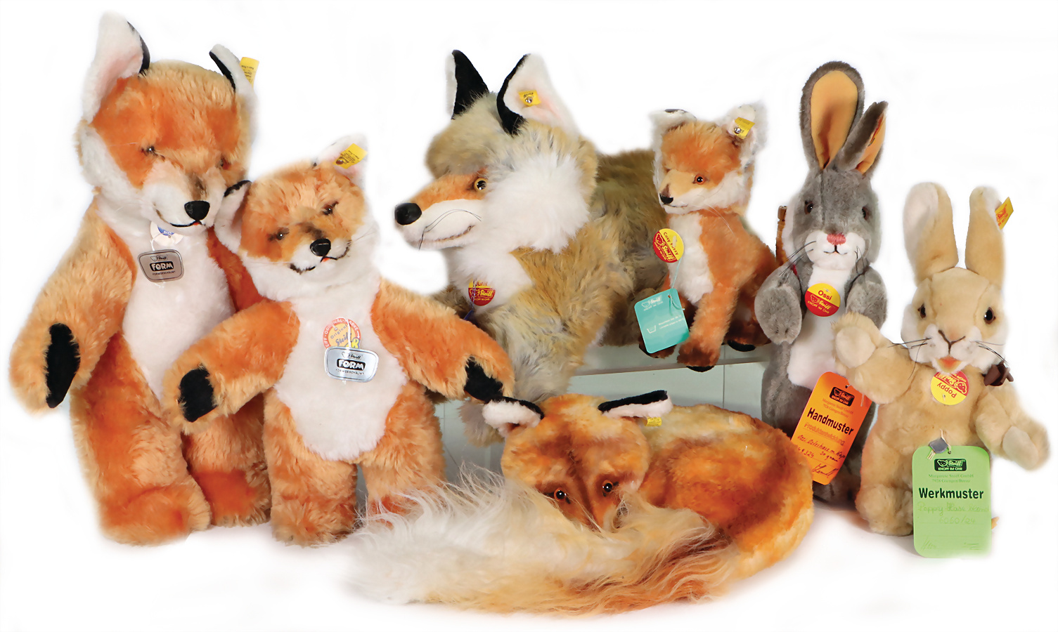 Nachkrieg, OSSI, komplett, rückseitig gelbe Fahne Aufdruck: Handmuster, Anhänger mit Siegel: Handmuster Produktionsentwicklung, Artikelnr. 349324 1993, POPPY, komplett, gelbe Fahne, rückseitig Aufdruck: Werkmuster, Anhänger mit Siegel, Werkmuster, Artikelnr. 6060/ 24, 1988, JUNIOR, komplett, Artikelnr. 3881/ 35, Archiv-Anhänger: 1975, COSY FUZZY, komplett, Artikelnr. 4900/ 22, Archiv-Anhänger: 1972, Dralon-Weichfuchs, komplett, Artikelnr. 6215/ 40, Archiv-Anhänger: 1971, Dralon-Weichfuchs, komplett, Artikelnr. 6215/ 30, Archiv-Anhänger: 1971, RINGEL-FUCHS, Knopf und Fahne, Artikelnr. 1540/ 30, Archiv-Anhänger: 1968, sehr guter unbespielter Zust., Handmuster aus dem Steiff-Archiv mit orig. Steiff-Archiv Anhänger