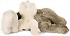 Konv. 6 Teile, Nasevornhörnchen, Artikel-Nr. 7504/20, gelb, Artikel-Nr. 7508/20, grau, Krokodil, Handspielpuppe, Artikel-Nr. 7025/37, sehr guter unbespielter Zust., Handmuster aus dem STEIFF Archiv mit Orig.-STEIFF Archiv-Anhänger