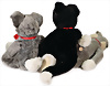 3 Teile Nachkrieg, SCHLENKER-HUND, komplett, Aufdruck auf Fahne: Handmuster, Anhänger mit Metall-Siegel: Handmuster 6287/ 70 1989,SCHLENKER-KATZE, komplett, Aufdruck auf Fahne: Handmuster, Anhänger mit Metall-Siegel: Handmuster 6285/ 70 1989, LULAC, mit Schild, Artikelnr. 6281/ 75, Archiv-Anhänger: 1987, sehr guter unbespielter Zust., Handmuster aus dem Steiff-Archiv mit orig. Steiff-Archiv Anhänger