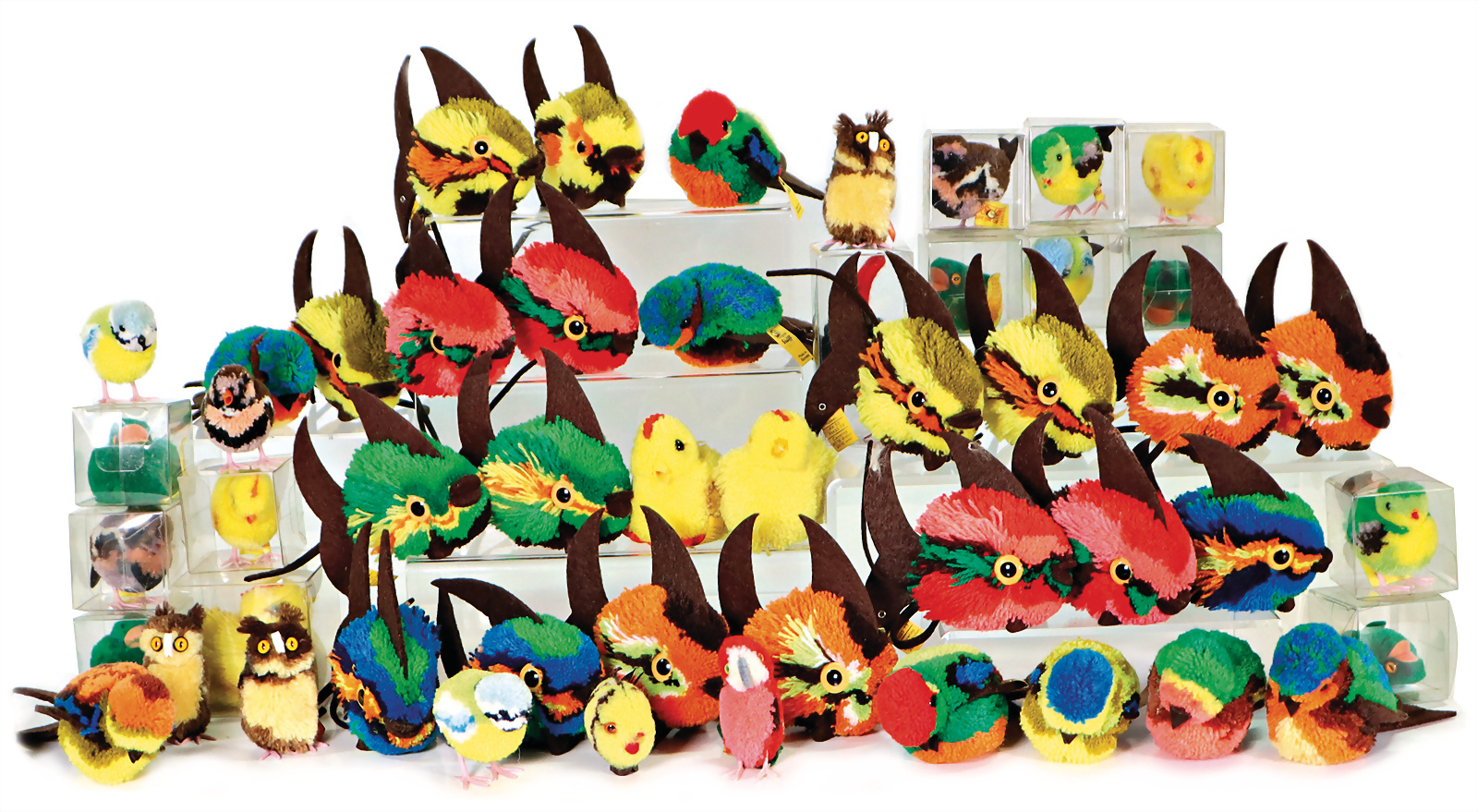 Konv., Kiste, Wollminiaturen, Fisch, Spatzen, versch. Gr. von 3-12cm, Guter Zust., bitte besichtigen.