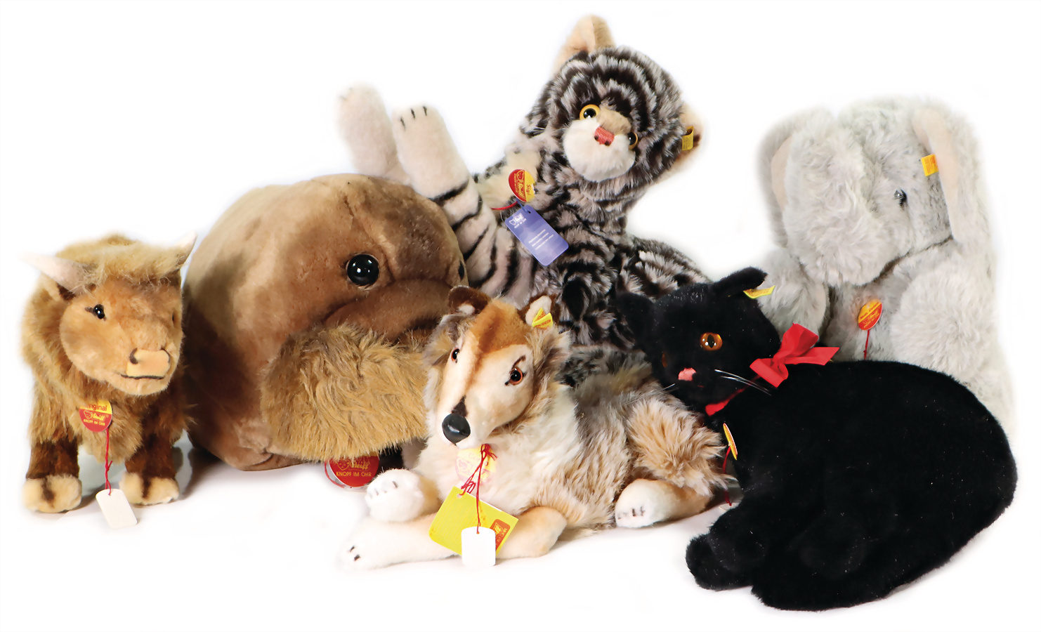 Konv. 6 Art., Stier kompl., Anhänger mit Geschmacksmusteranmeldung beim Amtsgericht, Nr. 3751, 34cm, Katze Sigi kompl., Anhänger mit Geschmacksmusteranmeldung beim Amtsgericht, Nr. 3751, 34 cm, Katze Sigi kompl., Anhänger mit Geschmacksmusteranmeldung beim Amtsgericht, Nummer 3751, 34cm, Katze Sigi, Kompl., Anhänger mit Geschmacksmusteranmeldung beim Amtsgericht, Nr. 3751, 34cm, Katze Sigi kompl., 2649, 40cm, Elefant kompl., mit Anhänger, Geschmacksmusteranmeldung beim Amtsgericht Nr. 3732, 38cm, Corso Hund kompl., Anhänger mit Geschmacksmusteranmeldung beim Amtsgericht Nr. 3176, 33 cm, Katze kompl., Anhänger mit Geschmacksmusteranmeldung beim Amtsgericht Nr. 3166, 32 cm, Baby Walli mit Brustschild, Anhänger mit Geschmacksmusteranmeldung beim Amtsgericht Nr. 3743, 55cm