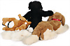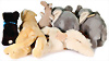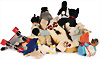 Konv. DIGGY, mit Schild, Artikelnr. 1840/26, Archiv-Anhänger mit Siegel: Werkmuster 1985, COSY SIAN, mit Schild, Artikelnr. 5110/22, Archiv-Anhänger: 1970, MINKY Wiesel, Knopf und Fahne, Artikelnr. 2230/22, Archiv-Anhänger: 1969, ARRY, komplett, Artikelnr. 4216/30, Archiv-Anhänger: 1977, MOLLY CORSO, komplett, Artikelnr. 0338/35, Archiv-Anhänger: 1976, sehr guter unbespielter Zust.