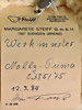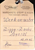 2 Teile, Braunbär 75, Knopf und gelbe Fahne, Aufdruck: Handmuster, Artikelnr. 069963, Archiv-Anhänger mit Siegel: Handmuster 1994, PASCHA, Artikelnr. 6314/60, Archiv-Anhänger: 1978, sehr guter unbespielter Zust.,