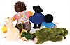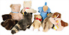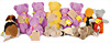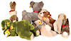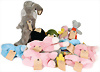 Konv. 7 Art., Happy-Jumbo kompl., Nr.5755-22 gelb, Anhänger Handmuster mit Metallsiegel, Baby Floppy Katze, Nr.566-25, hellblau, Baby Floppy Hase, blau, Nr.5656-25, Baby Floppy Hund Nr.5660-25, rosa, Handmuster mit Metallsiegel, Jolli Hase, grau, Nr.3480-40, Anhänger Handmuster mit Metallsiegel, Baby Molly Teddy, rosa, Artikelnummer 5676-60 mit Anhänger, Handmuster mit Metallsiegel. Sehr guter Zustand.