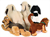 Konv. 5 Art., Dackel Waldi kompl., Nr.4142/28, 43 cm, Yoli Cockie kompl., Anhänger mit Geschmacksmusteranmeldung, beim Amtsgericht Nr.2487, 45cm, 2x Hassan kompl., Anhänger mit Geschmacksmusteranmeldung beim Amtsgericht Nr.3650, 3649, 43 cm,50 cm, Arco kompl., Anhänger mit Geschmacksmusteranmeldung beim Amtsgericht Nr. 3102, 55cm, guter Zustand